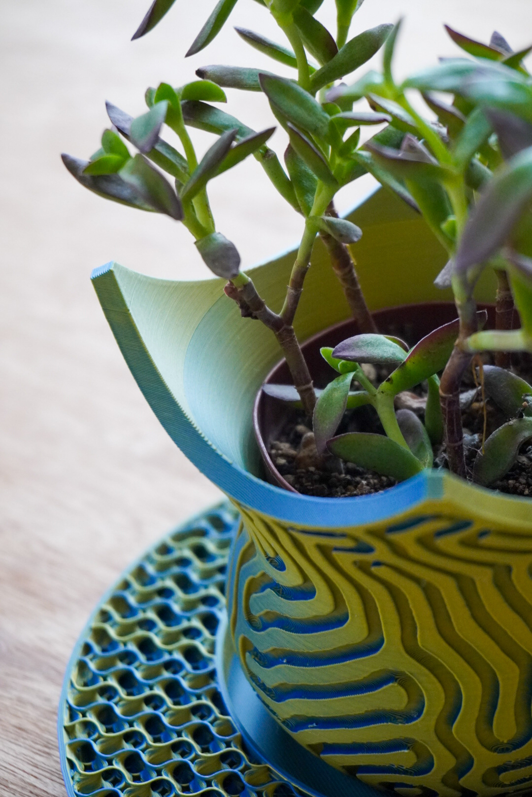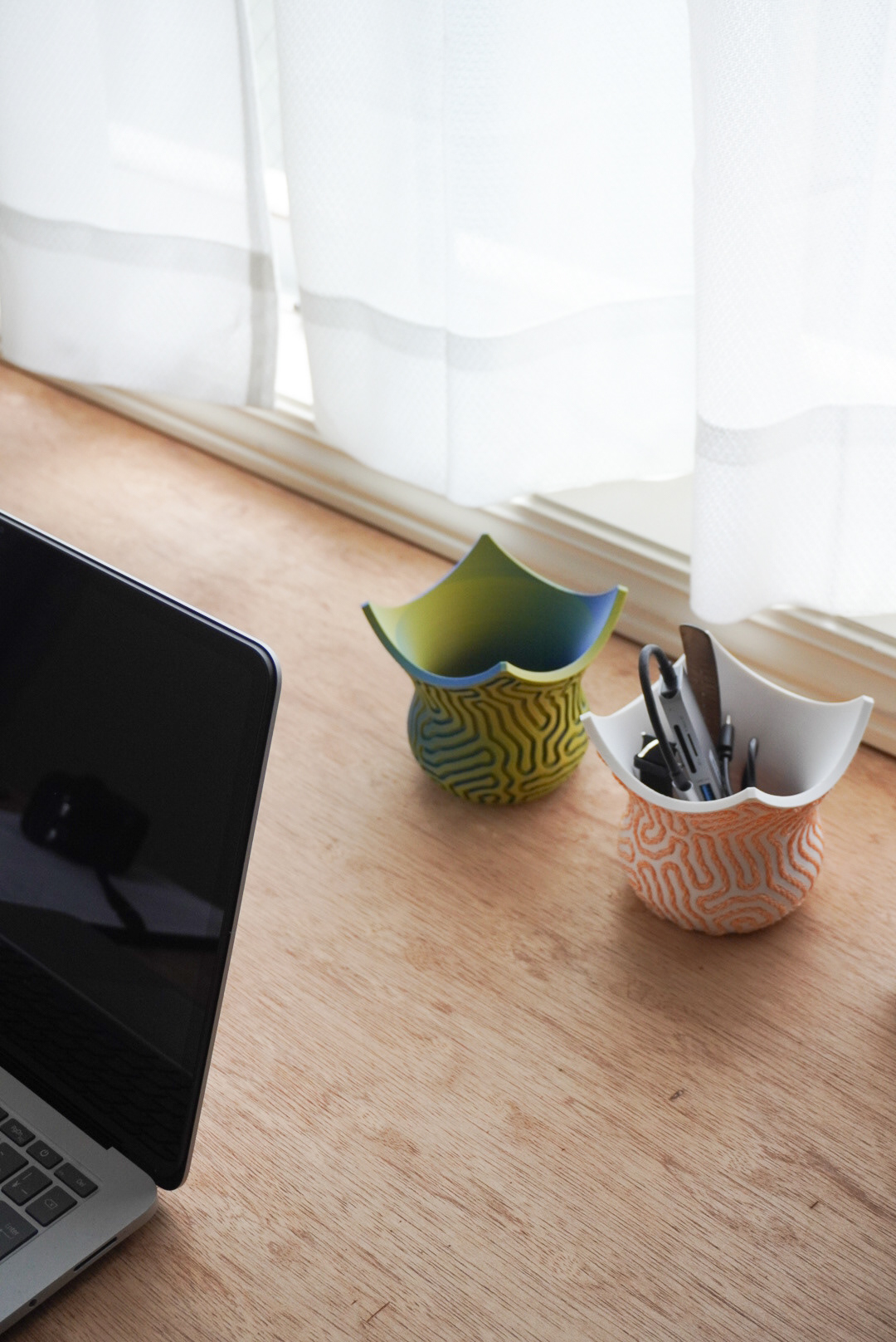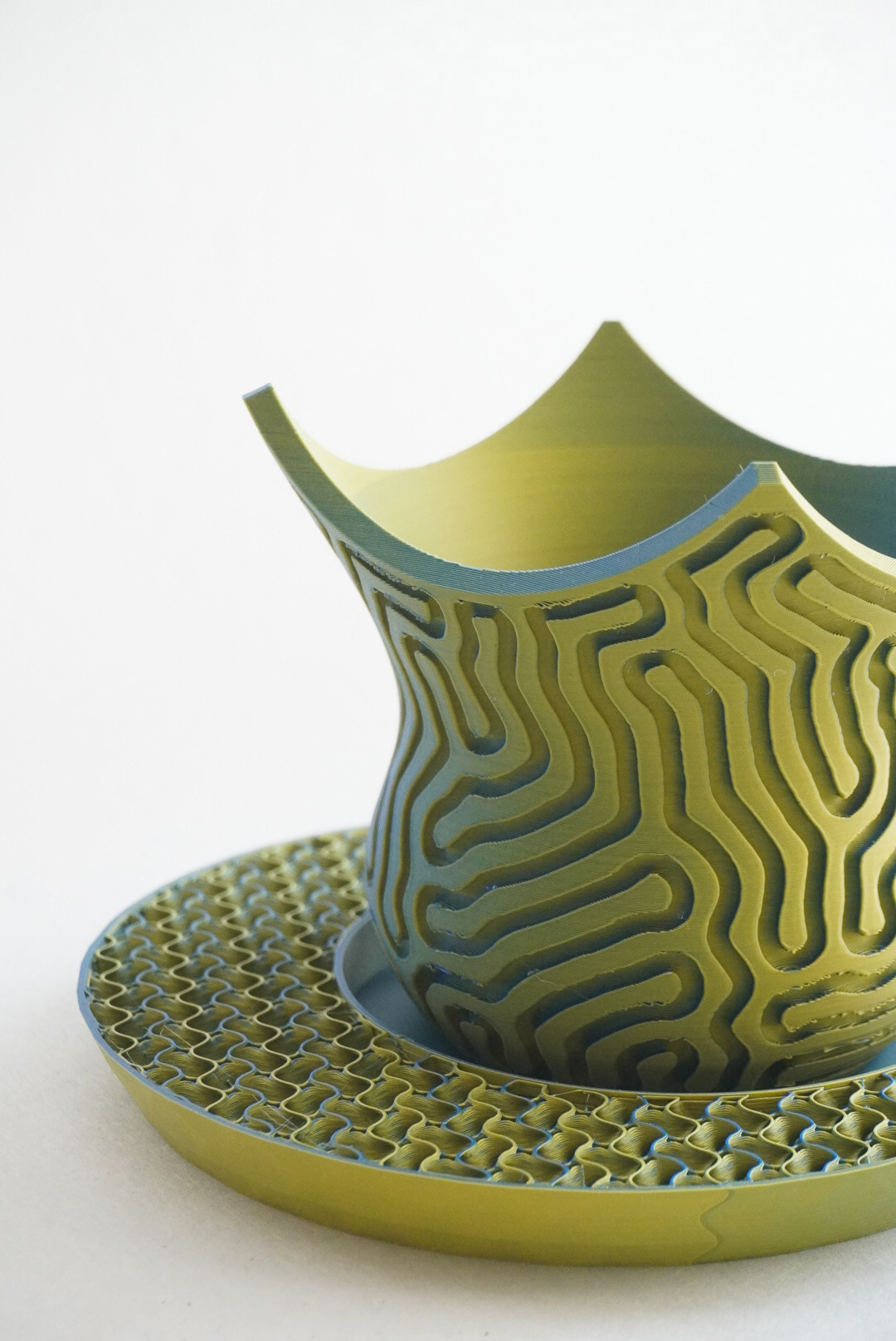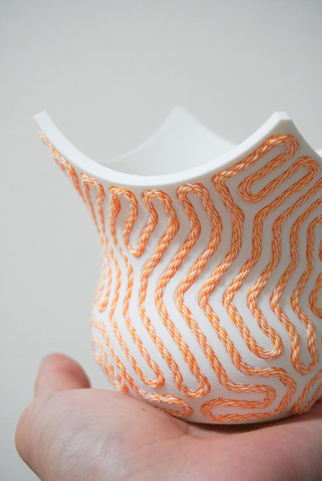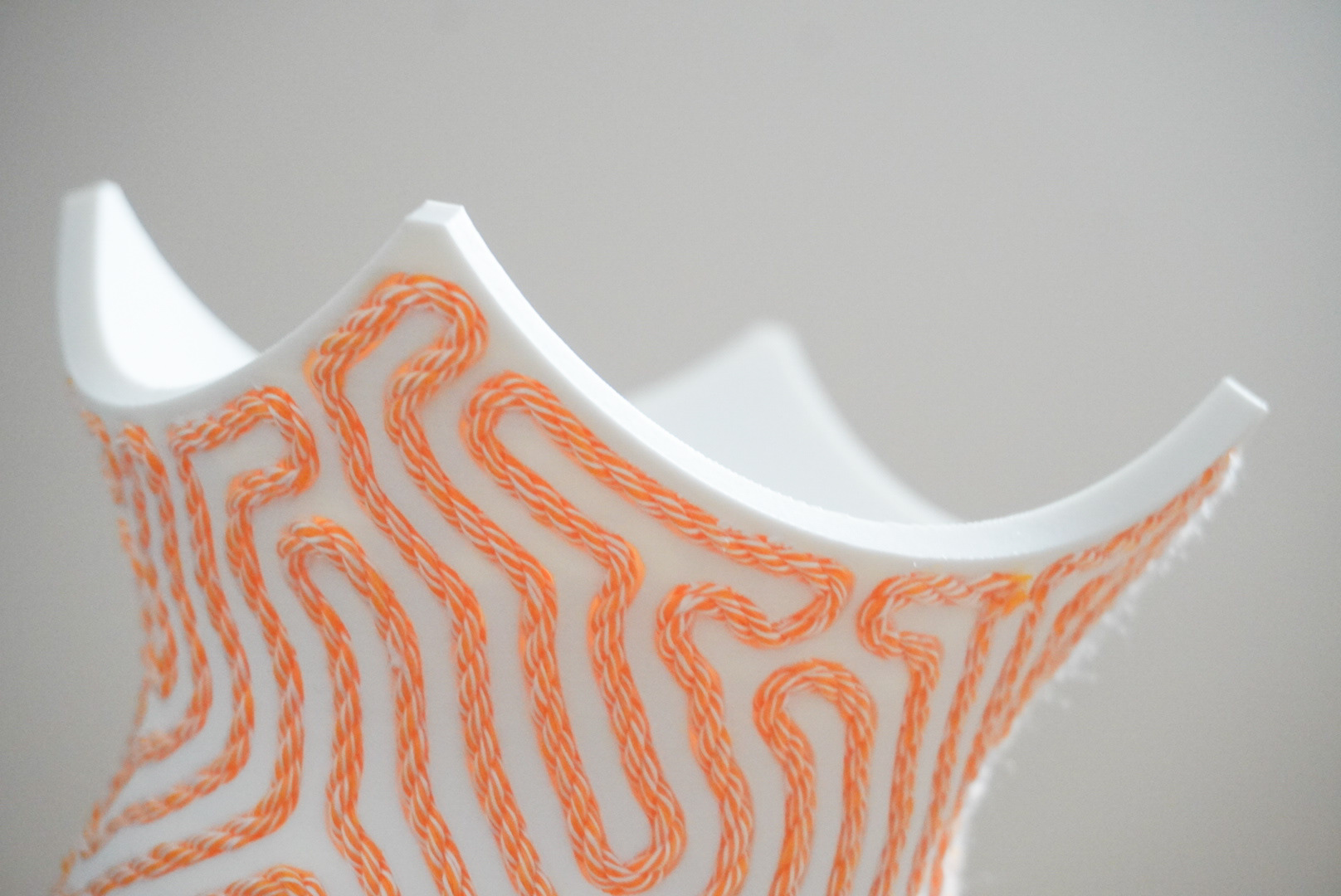 手法:縄文土器を現代的に再解釈し、3DPであらかじめ縄の軌跡を減算したジオメトリーを出力した。