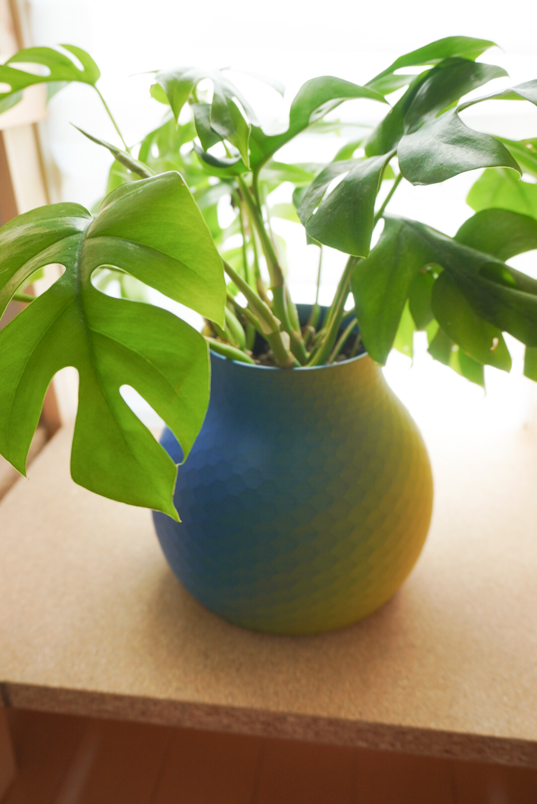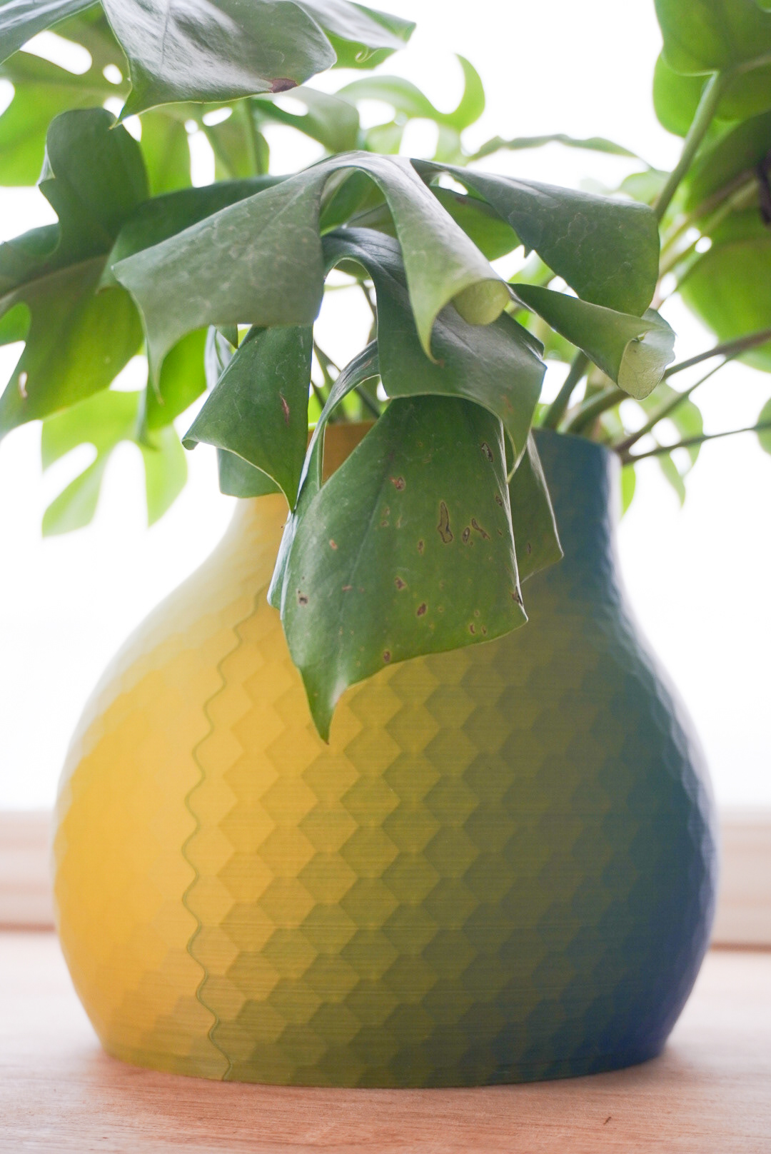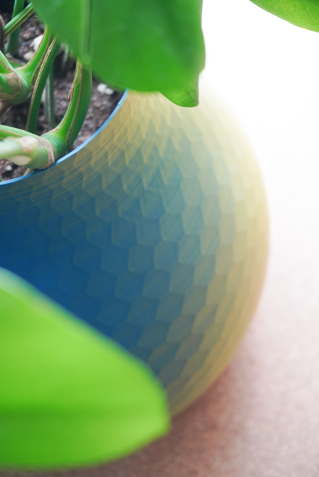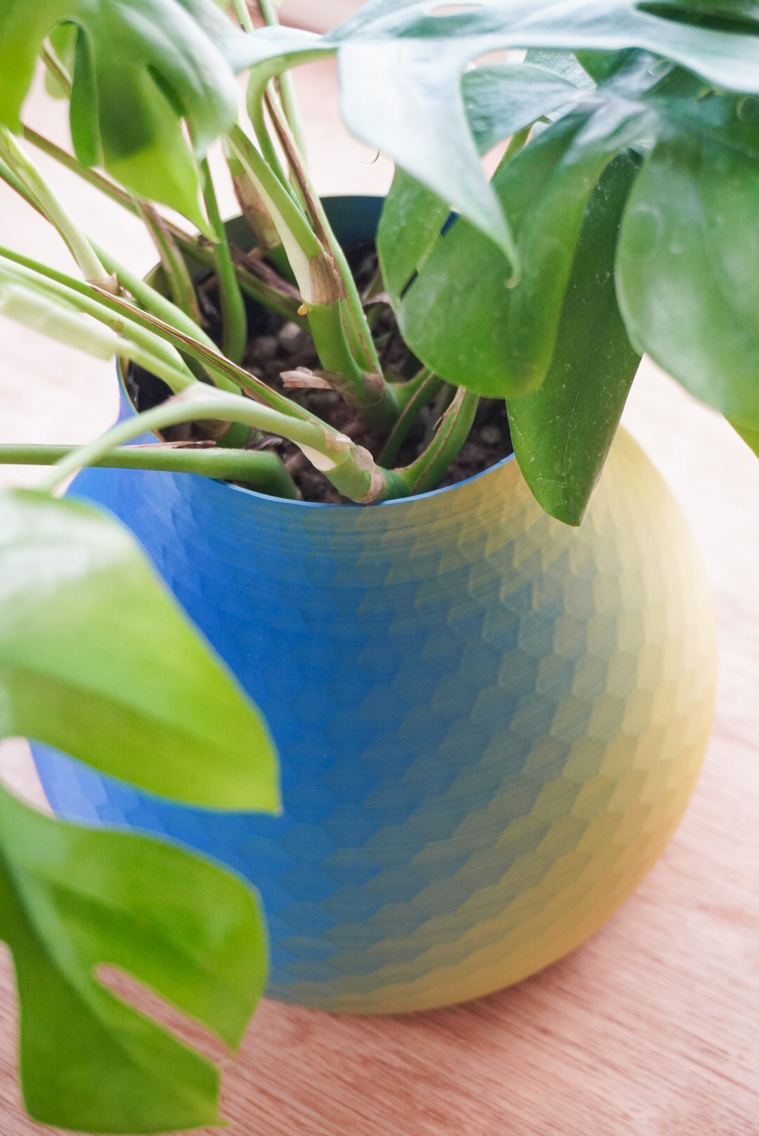 手法:新居用に鉢カバーを作成した。円柱と球によるシンプルな形状とし2色フィラメントを用いた鮮やかな装いとした。