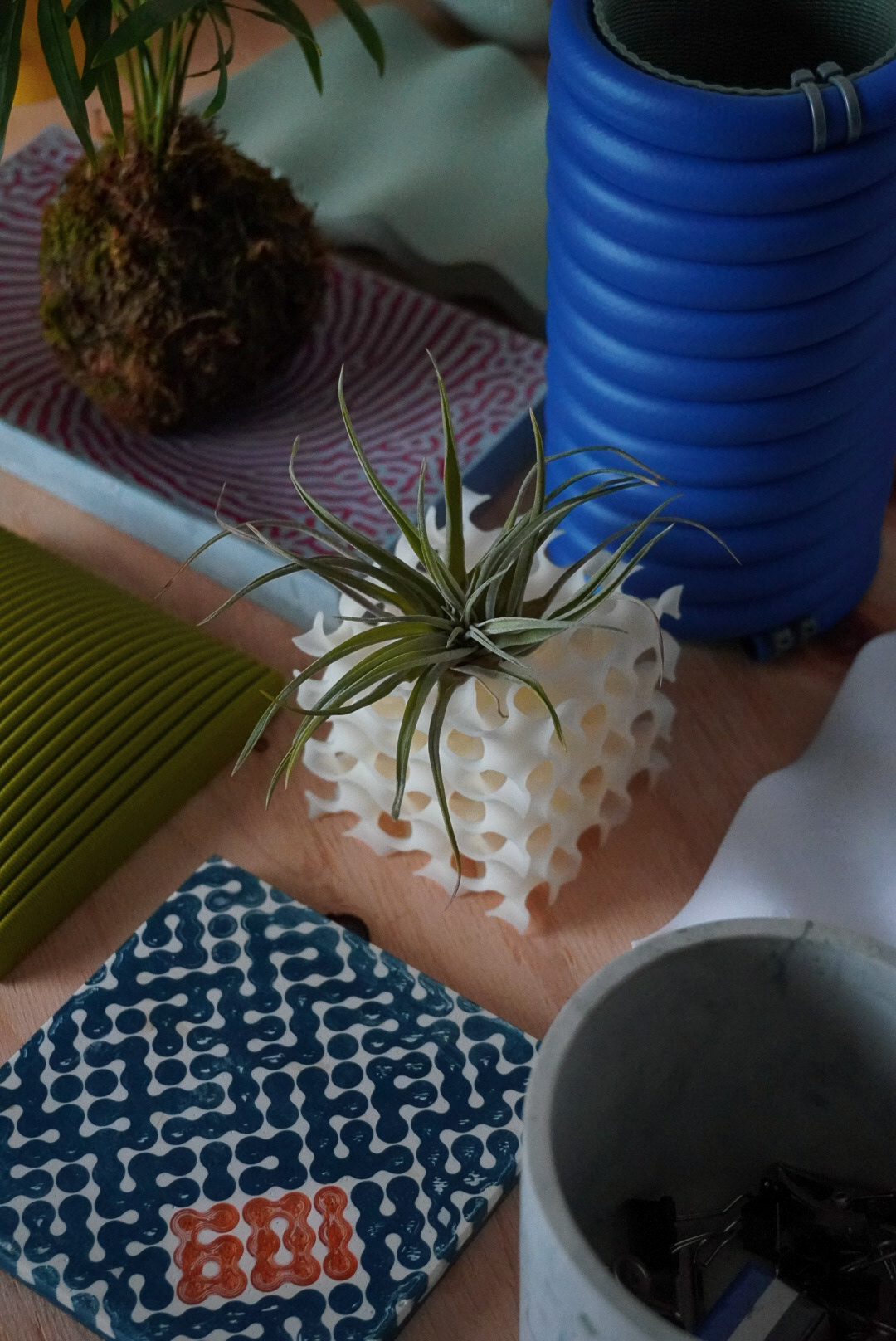 手法:3DPによる幾何学的な形状と植物による有機的な形状の調和を目指すスタディ群。